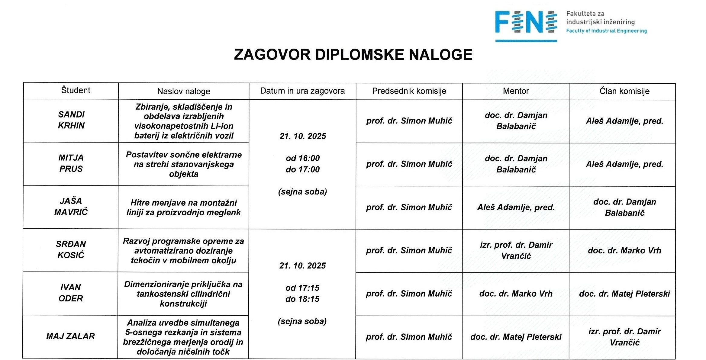 Zagovori diplomskih in magistrskih nalog